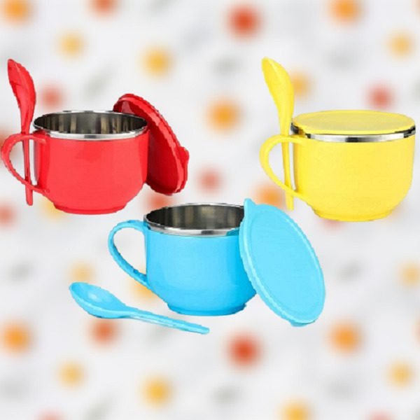 • Designed with steel inner and pastels outside with Lid, Spoon and Fork