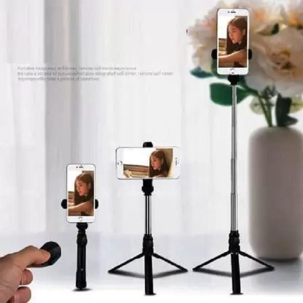 - Tripod Stand Selfie Stick for Mobile and All Smart Phones Three-in-one Compact selfie stick with Wireless Remote Control and integrated with tripod, product length up to 60 Cm.